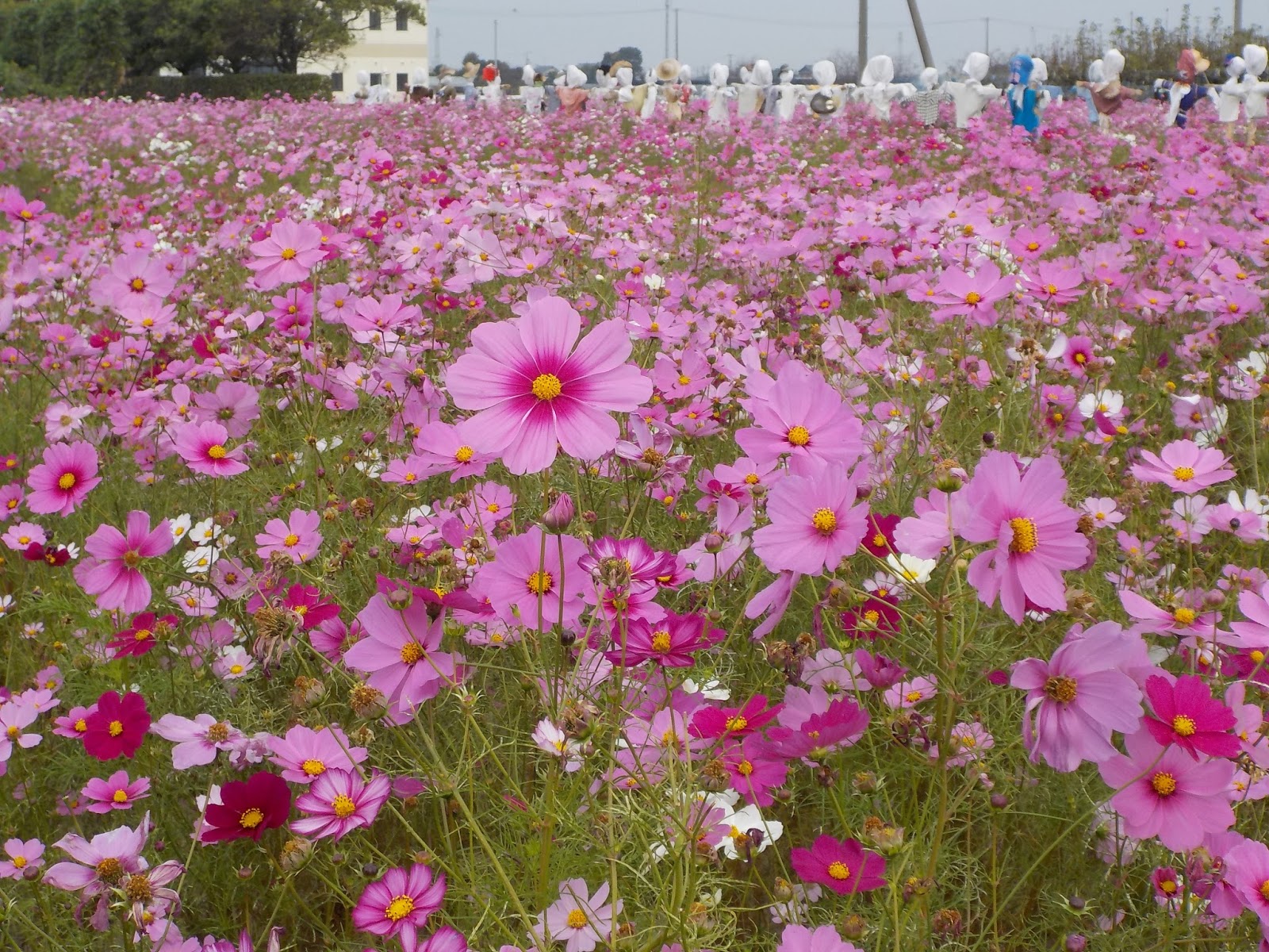 秋桜と案山子集団に挨拶されてチョット小休止・・・!